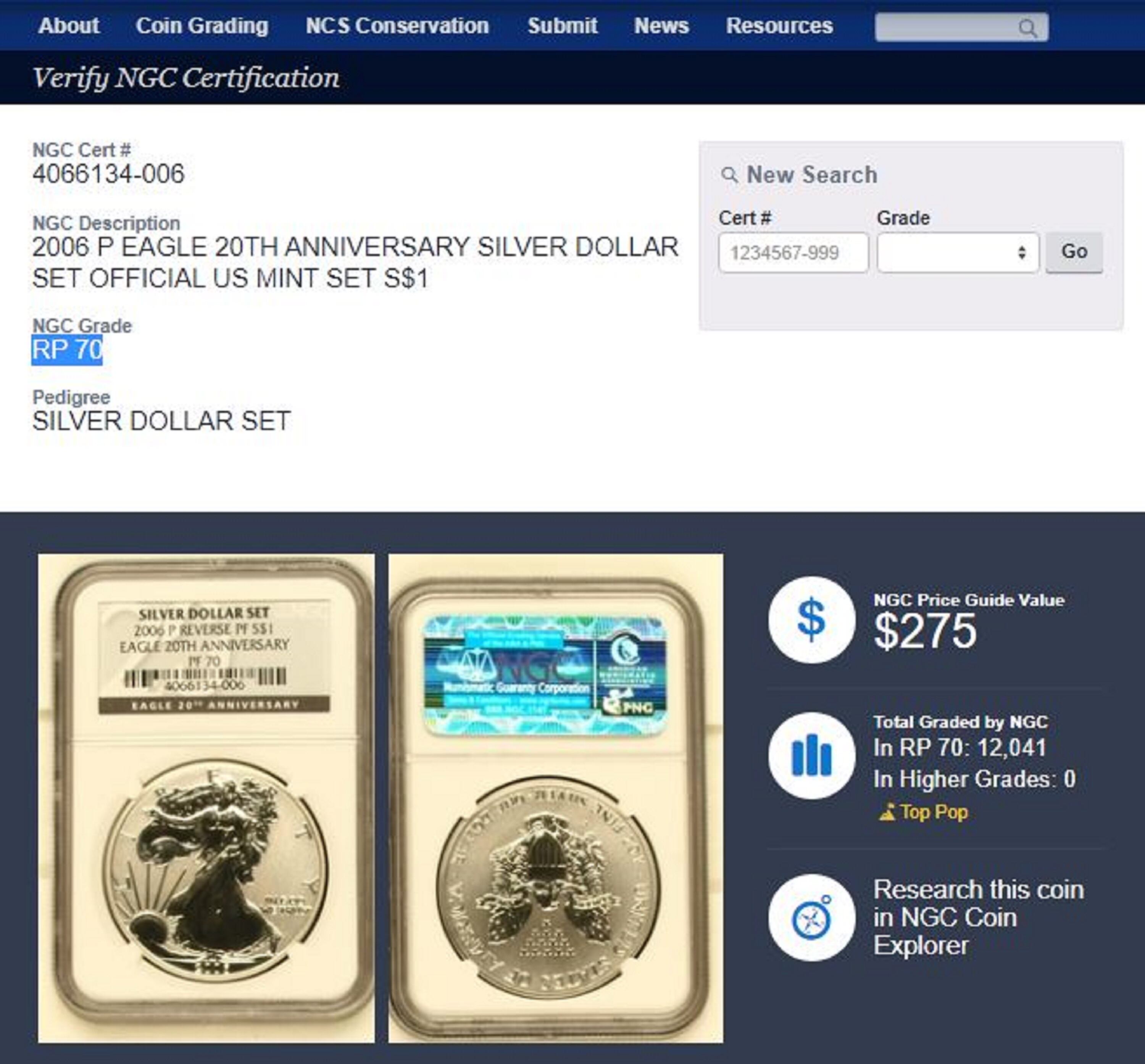 米国の第三者鑑定機関NGCにより