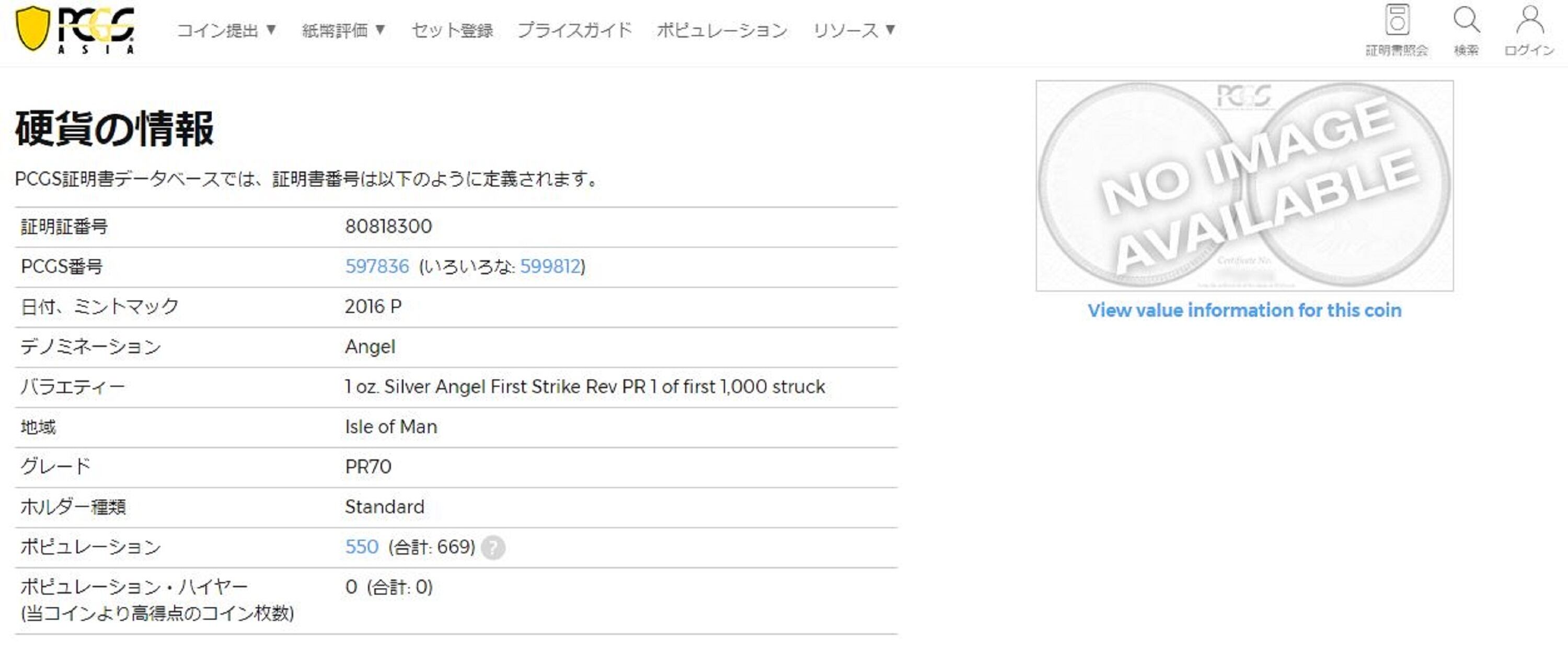 エンジェル PCGS PR70