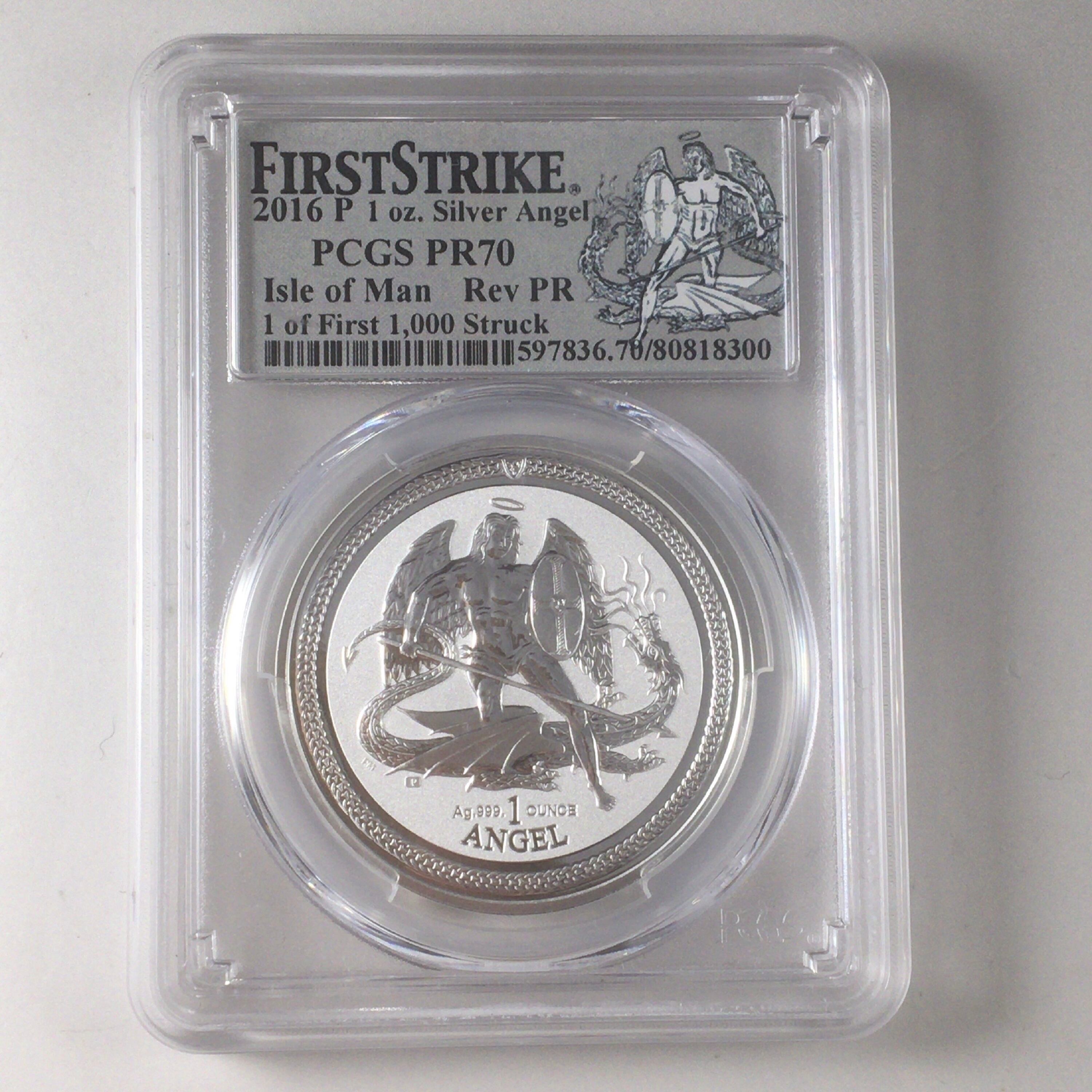 2016 イギリス 英国王室 マン島 エンジェル PCGS PR70 ファーストストラック エンジェル リバースプルーフ銀貨 コインWW1523