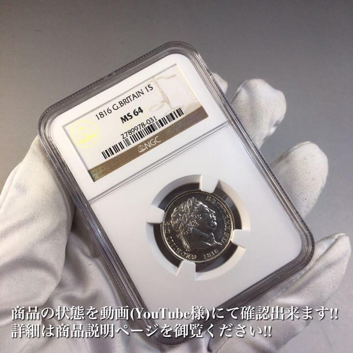 NGC鑑定MS64 1816年 イギリス 英国 1シリング 銀貨
