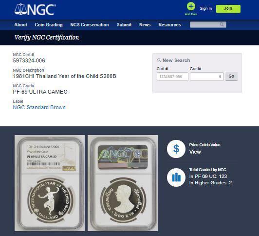 準最高鑑定 NGC PF69UC 1981年 タイ 200バーツ 銀貨