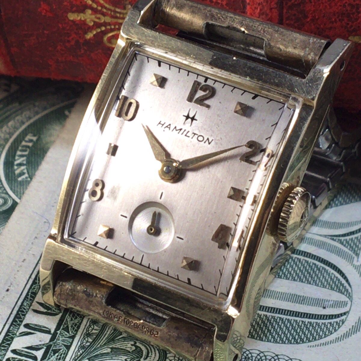 ハミルトン/HAMILTON/14金無垢/14K/スクエア/手巻き/レクタンギュラー/手巻き/男性用/アンティーク/メンズ腕時計WW161906Y