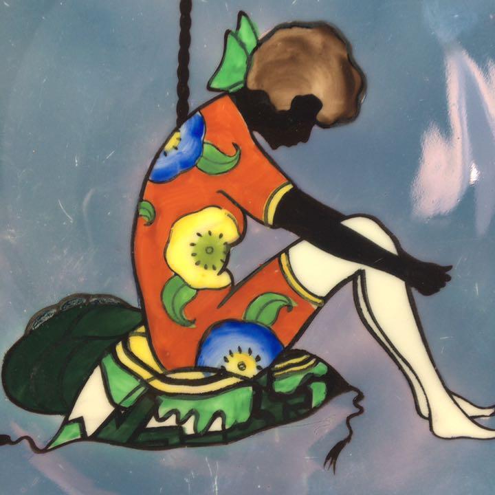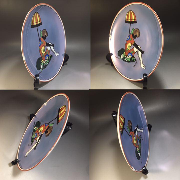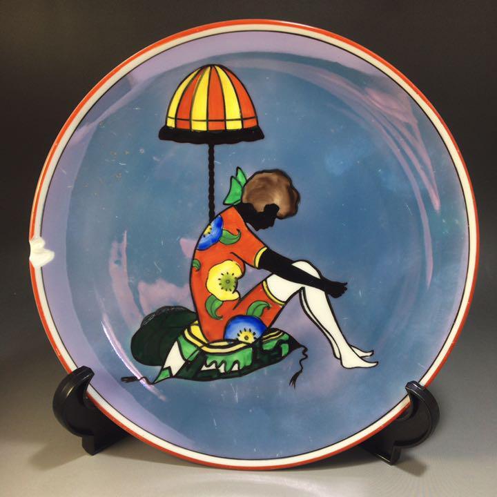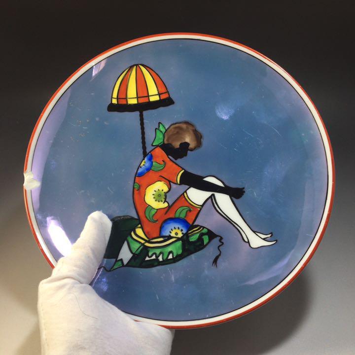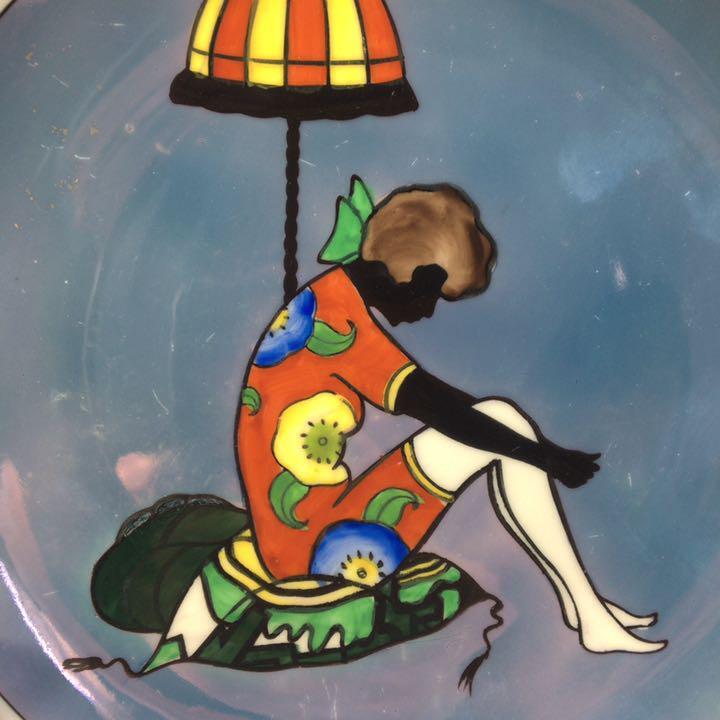 1921~41年/オールドノリタケ/アールデコ/ラスター/シルエットレディー/スタンドランプの横に座る女性/プレート/皿/飾り皿WW169851Y