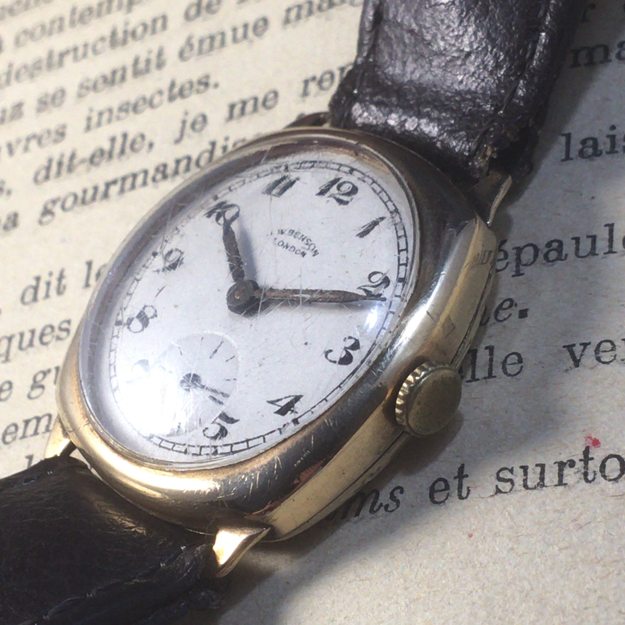 ★超絶美麗!!1956年 英国 イギリス ベンソン BENSON 9K 9金無垢 手巻き アンティーク 男性用 メンズ腕時計 WW1737