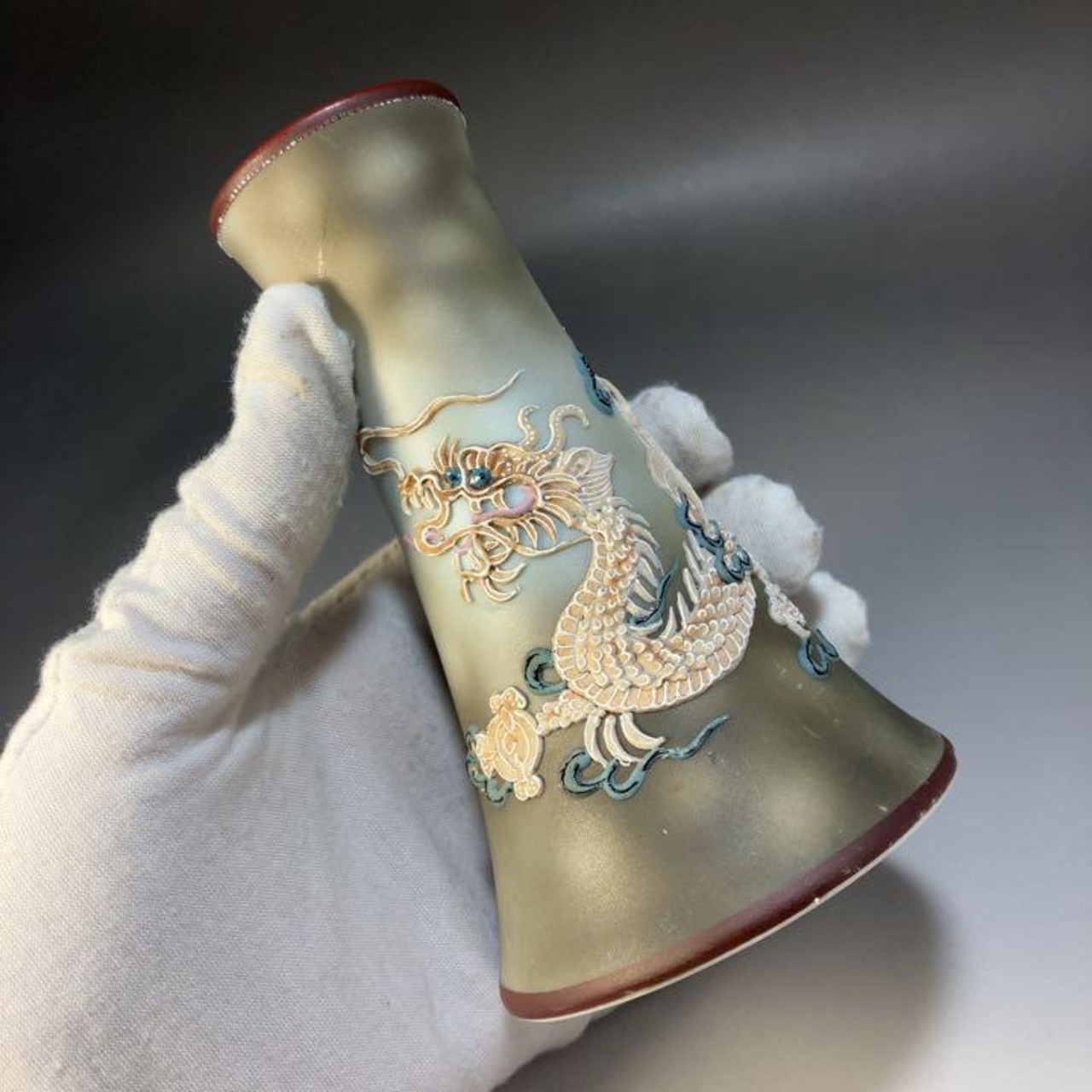 ★逸品★オールドノリタケ ドラゴン 盛り上げ 花瓶 激希少 高さ12cm WW181253Y