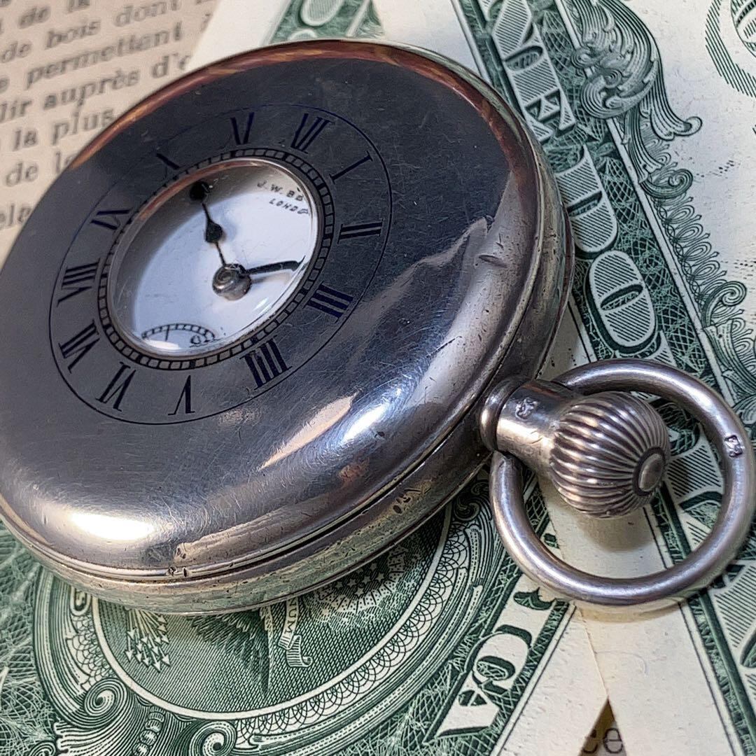 ★一点限り★英国紳士ブランド 白洲次郎御用達 Benson 102g 手巻き 懐中時計 ベンソン 銀無垢 ハンターケース 0.925 稼働良好 WW191006Y