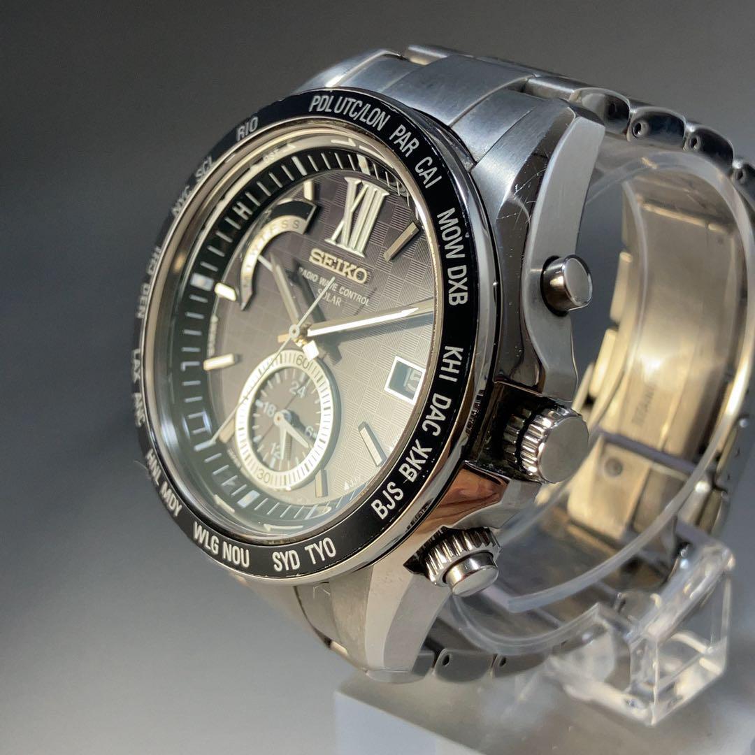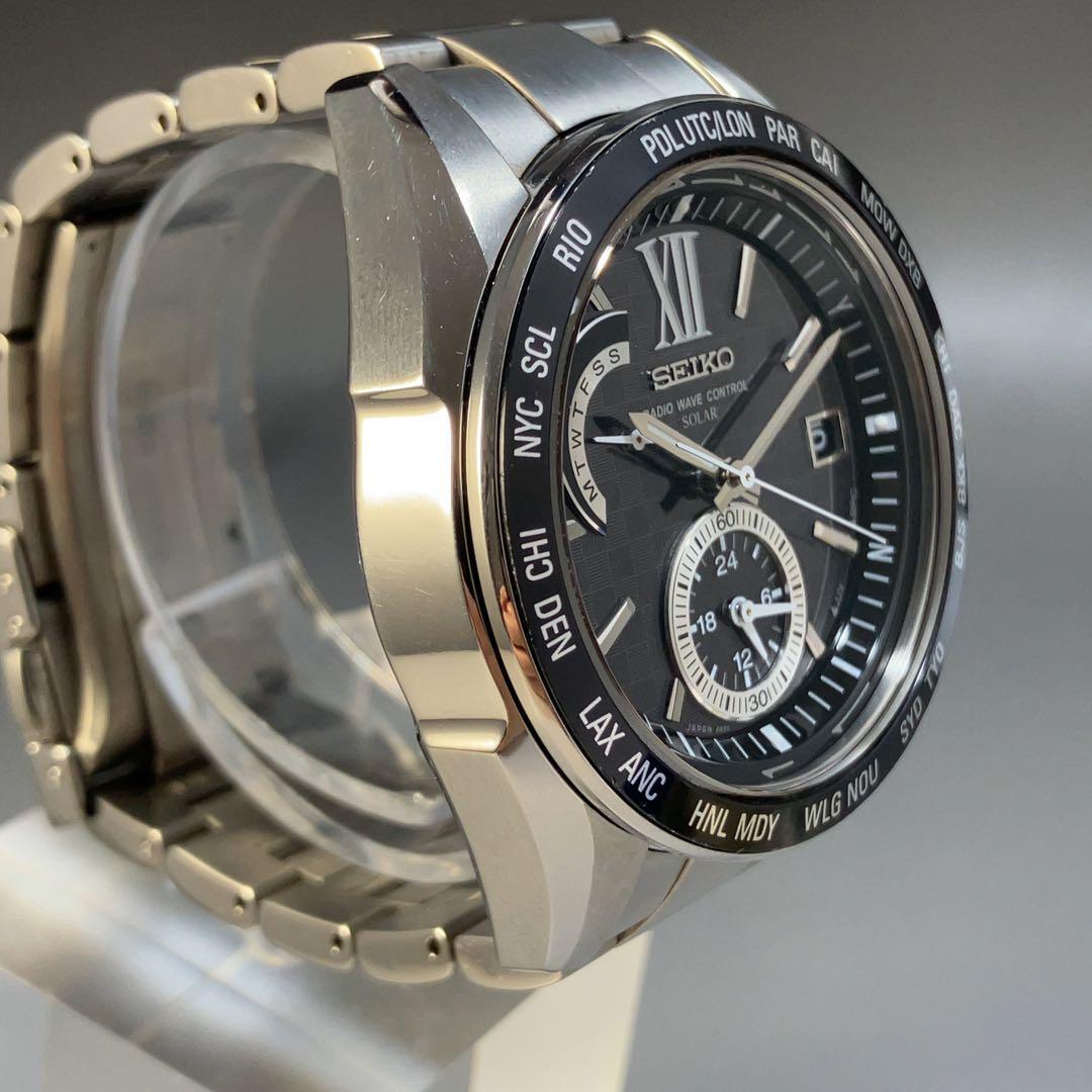 ★定価15.4万円★超絶美麗 黒文字盤 セイコー SEIKO 45mm ブライツ 8B54-0AG0 メンズ 電波ソーラー 男性用腕時計 良品 中古 稼働 動作良好 WW191753Y