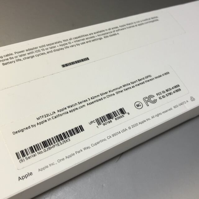 ★新品★Apple Watch Series 3(GPSモデル) 42mmシルバーアルミニウムケースとホワイトスポーツバンド デジタルウォッチ MTF22J/A WW191972Y