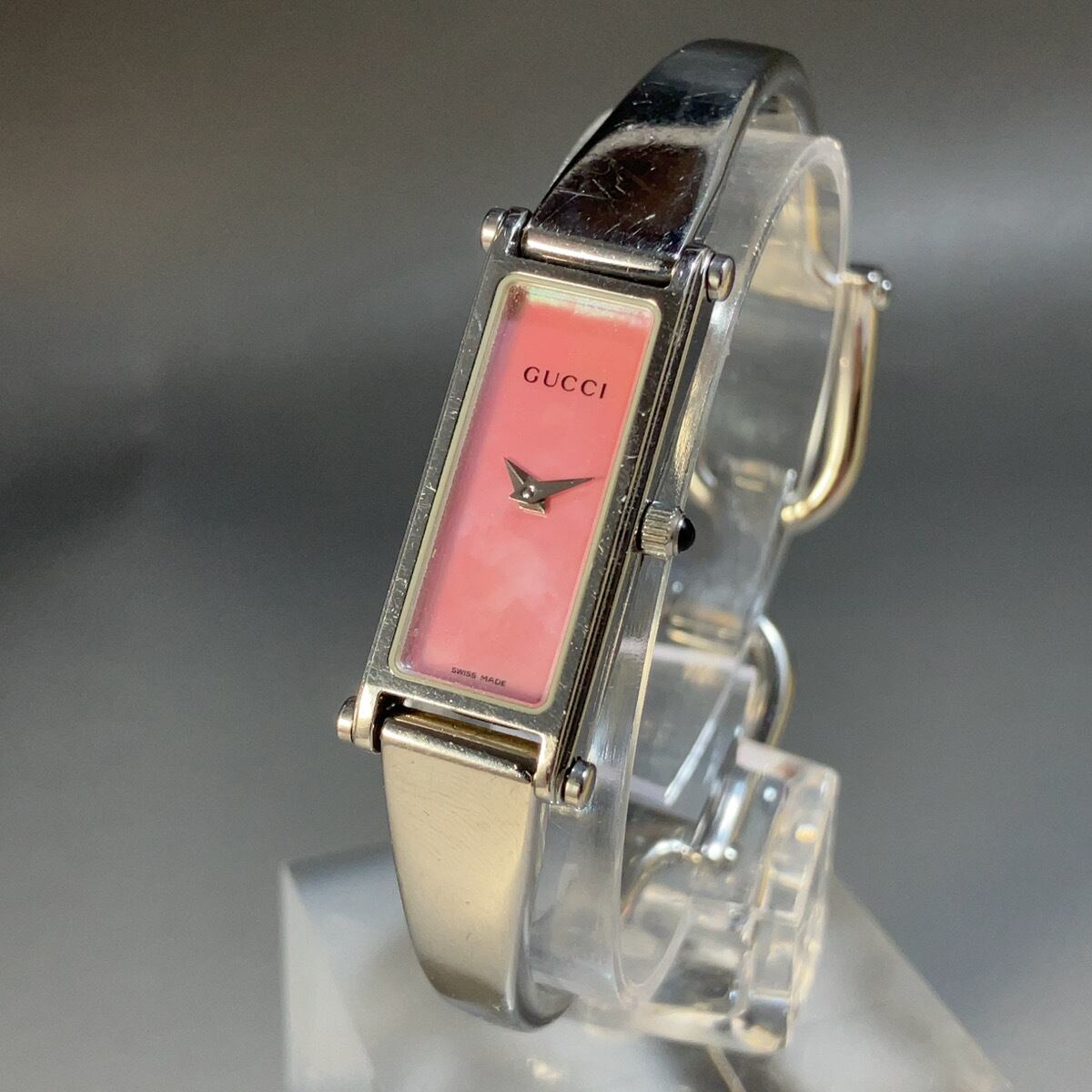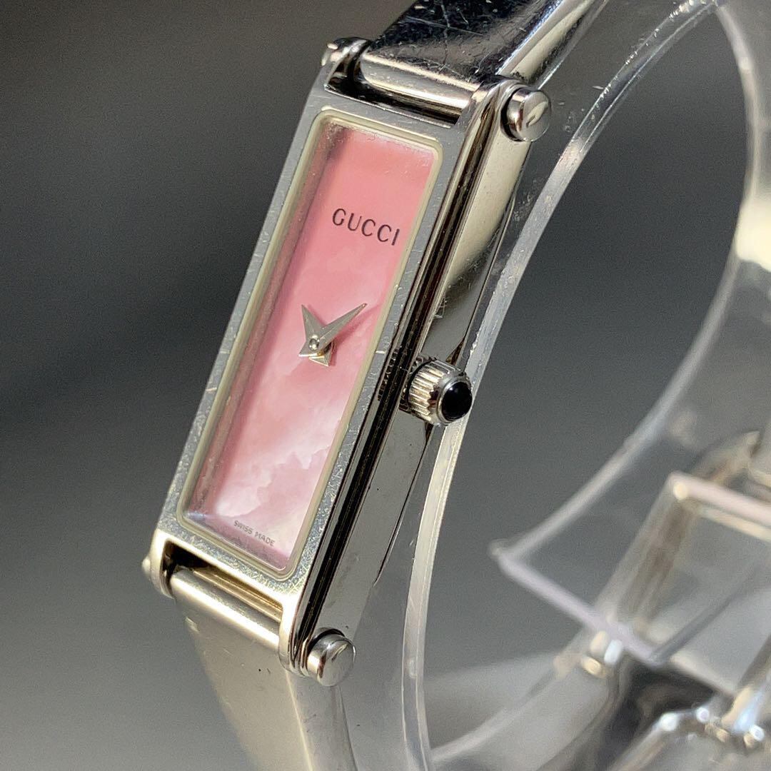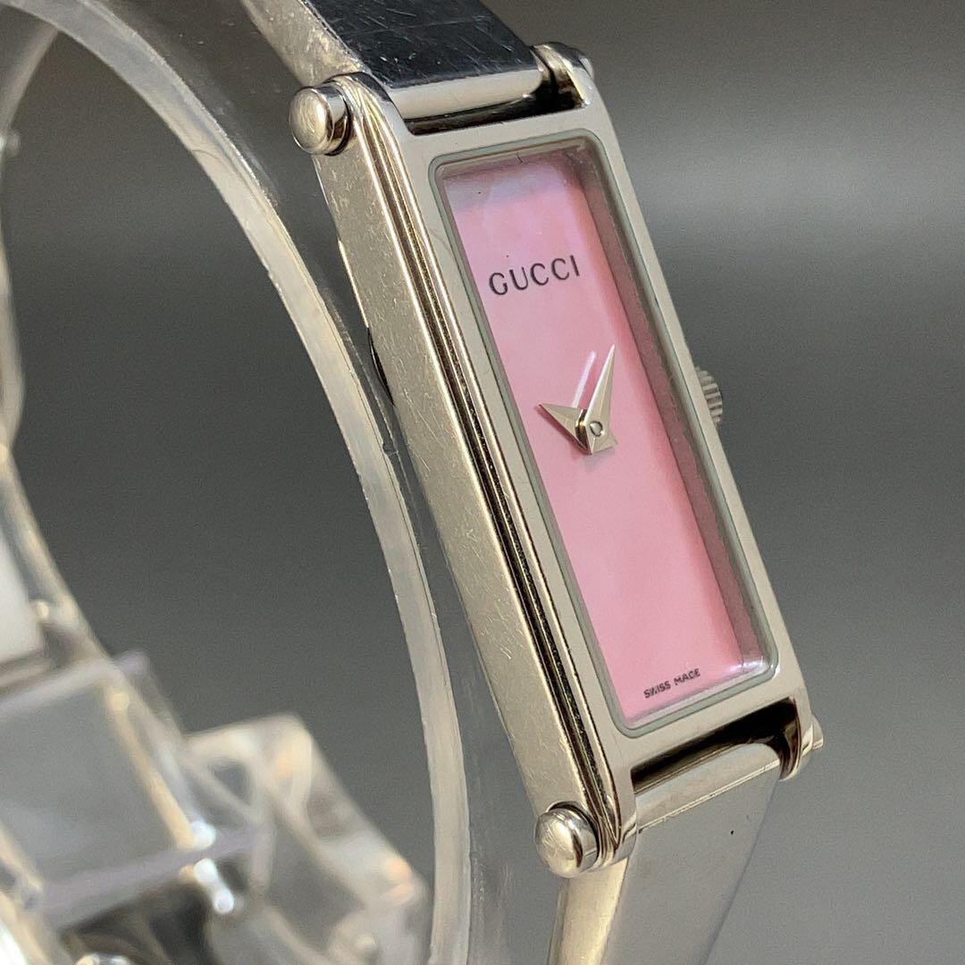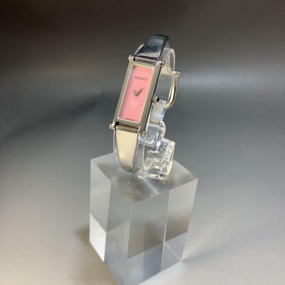 ★美麗/定価9万円★GUCCI グッチ イタリアブランド 1500L ピンク文字盤 レディース 女性用腕時計 クォーツ スクエア 稼働 中古 動作良好 WW194661Y