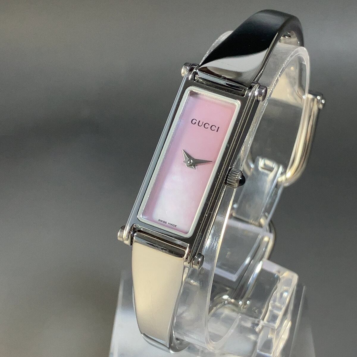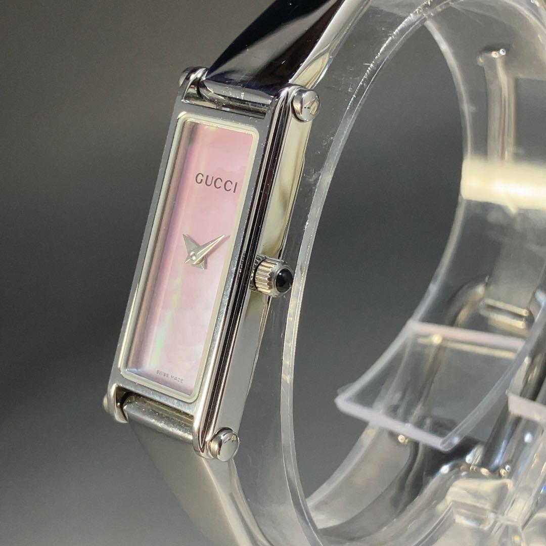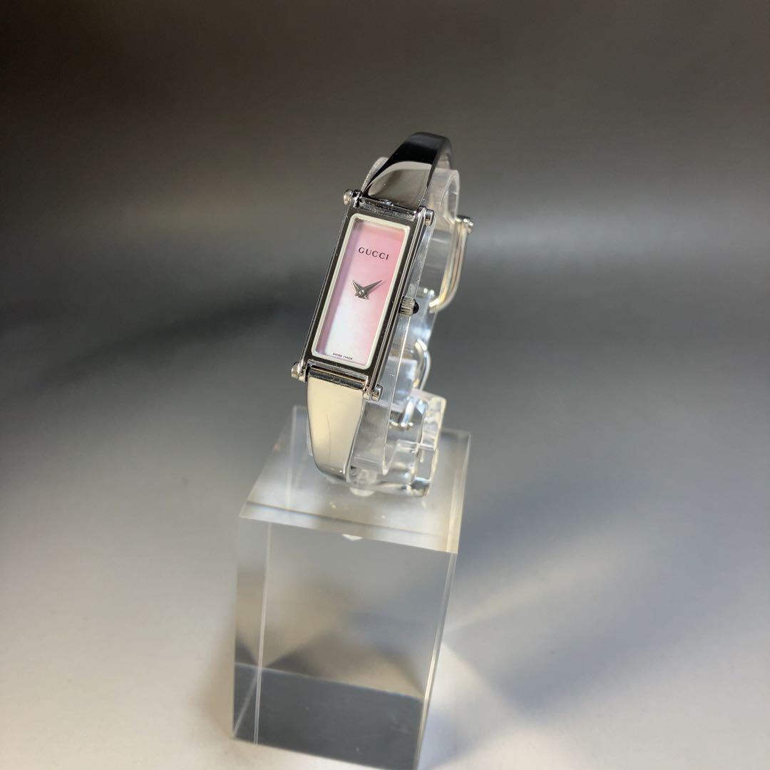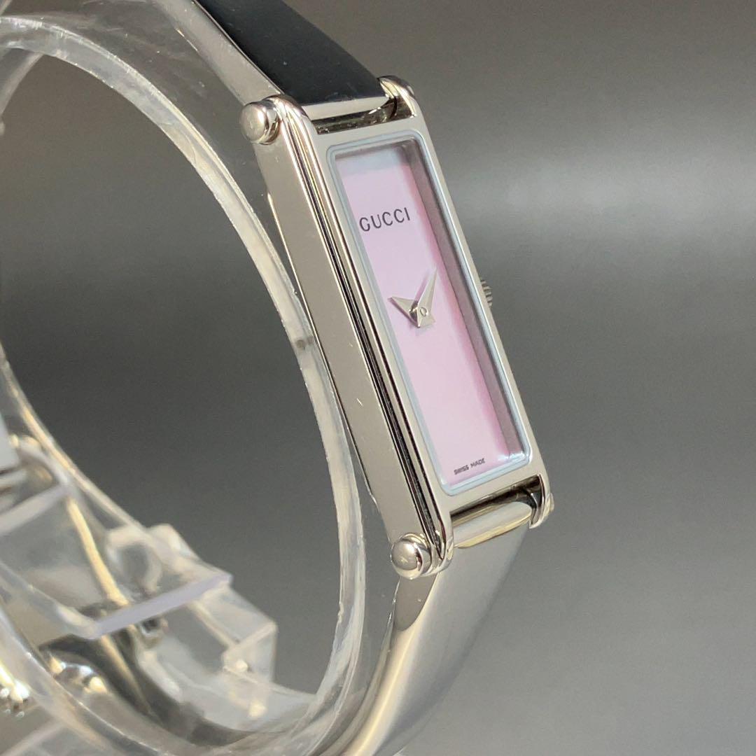★美麗/定価9万円★GUCCI グッチ イタリアブランド 1500L ピンク文字盤 レディース 女性用腕時計 クォーツ スクエア 稼働 中古 動作良好 WW195461Y
