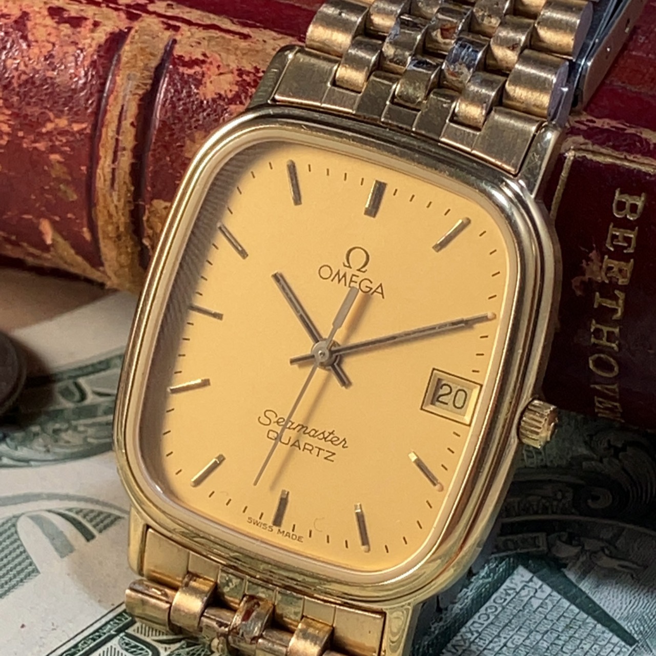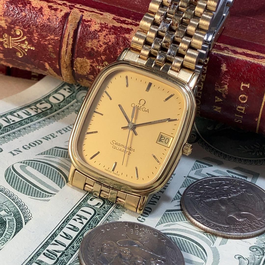 ★スイス高級ブランド★オメガ OMEGA シーマスター クォーツ デイト メンズ腕時計 男性用 アンティク ヴィンテージ 動作良好 WW209855Y