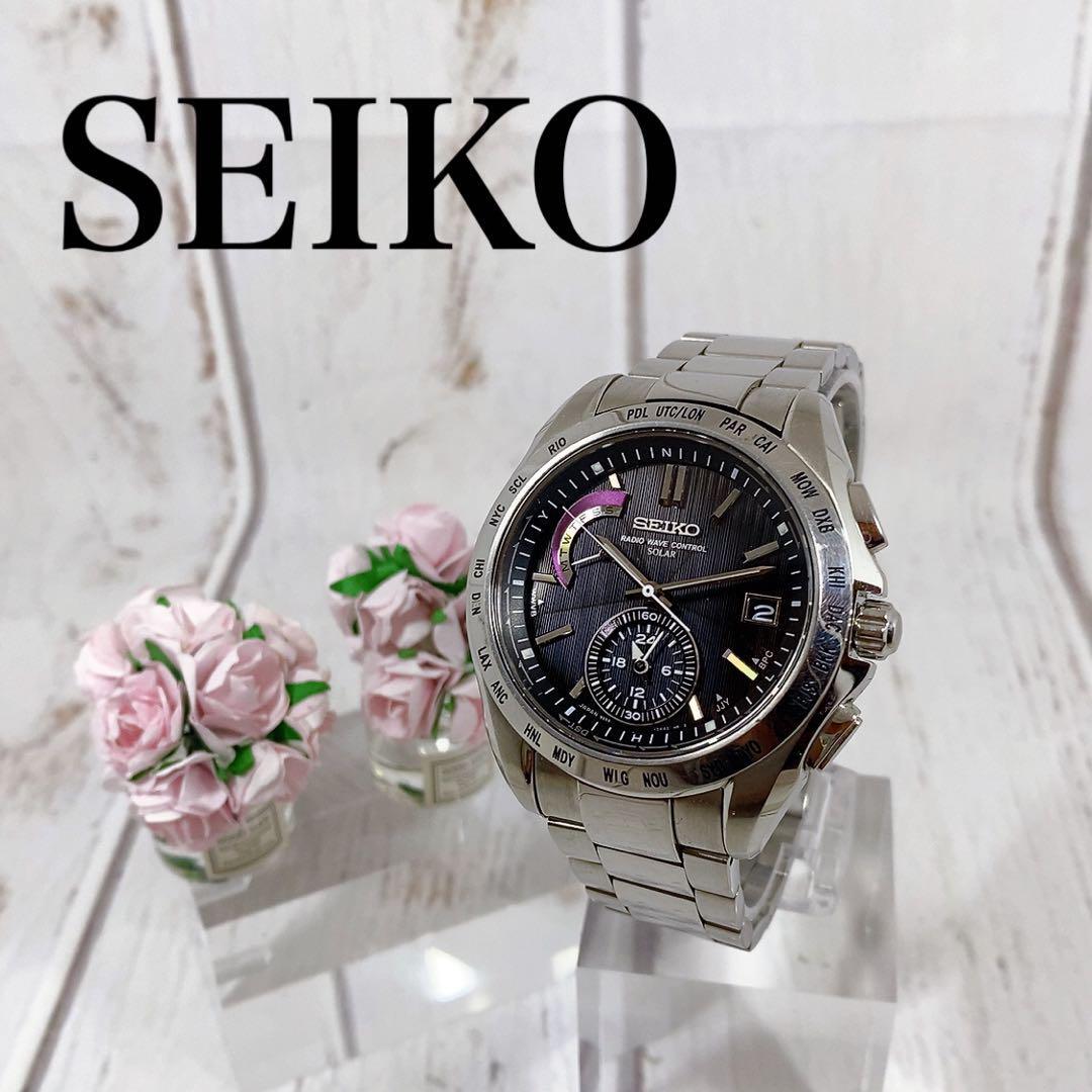 ★超絶美麗!!★セイコー SEIKO ブライツ ワールドタイム 電波ソーラー デイデイト メンズウォッチ 男性用腕時計 稼働 中古 動作良好 2330